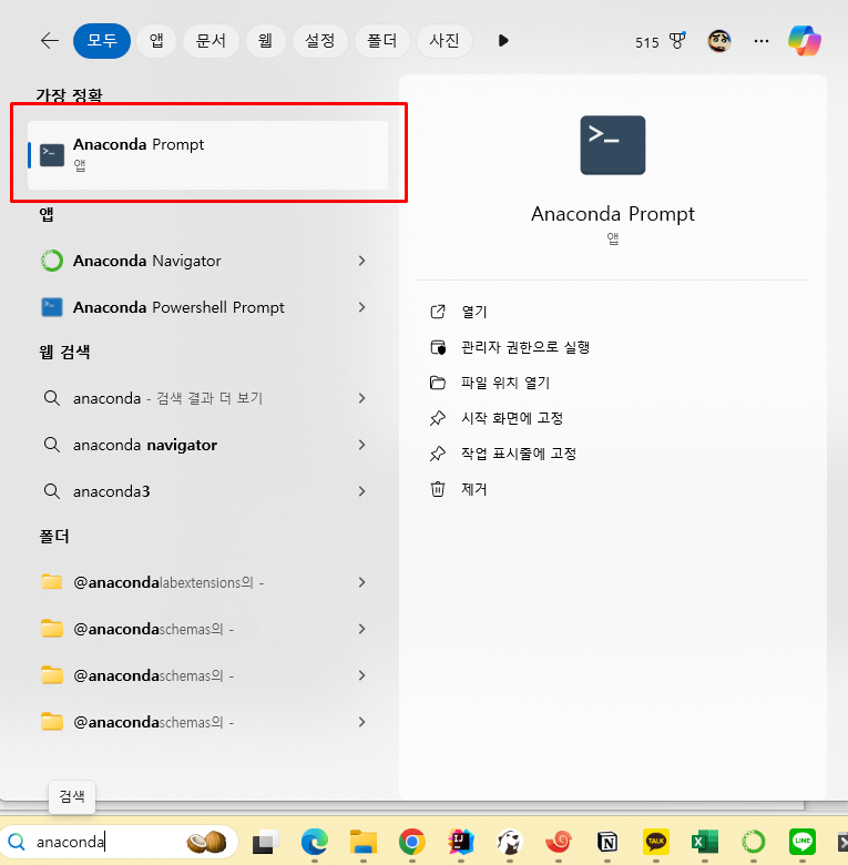 7. ๋ชจ๋ ์ค์น๊ฐ ์๋ฃ ๋ ํ anaconda prompt ์์ conda --version ์ ๋ ฅํด๋ณด๊ธฐ